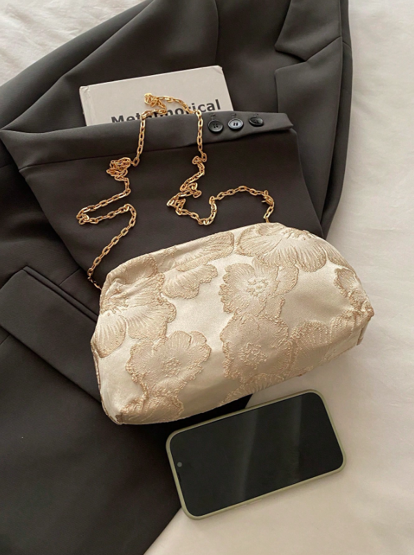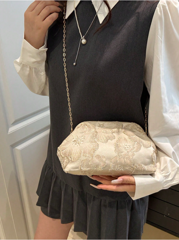 حقيبة كلاتش مطرزة بالزهور والكشكشة، مناسبة لحفلات المساء والزفاف والمناسبات الاحتفالية،